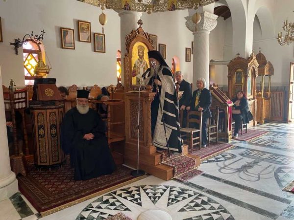 Προ της απολύσεως ο Σεβ. Μητροπολίτης ερμήνευσε το παλαιοδιαθηκικό ανάγνωσμα του Εσπερινού, από το βιβλίο των Παροιμιών (θ’,12-18), επισημαίνοντας ότι ο σοφός Σολομών απευθύνεται με πατρική αγάπη χρησιμοποιώντας την έκφραση «παιδί μου» διδάσκοντας μας, πως, εάν θέλει κάποιος να γίνει κατά Θεόν σοφός, δεν θα είναι καλός μόνον για τον εαυτό του αλλά και για τον πλησίον του με την έννοια ότι η αγάπη και η καλοσύνη του θα διαχέεται στο πρόσωπό του και δεν θα επιτρέπει σε κανέναν να τον βλέπει εχθρικά. Εάν όμως, γίνει κακός οι συνέπειες της κακίας του θα επιστρέψουν σε αυτόν ιδιαιτέρως εάν, όπως συμβαίνει συχνά στις ημέρες μας, η κακία προχωρά και στην χειροδικία. Ο κακός, που παριστάνει τον σοφό και στηρίζεται στο ψεύδος, οδηγείται, με μαθηματική ακρίβεια, σε έρημους δρόμους, που μόνο η δίψα και η ακαρπία υπάρχουν και μακροπρόθεσμα καθίσταται αδύνατον να ζήσει.