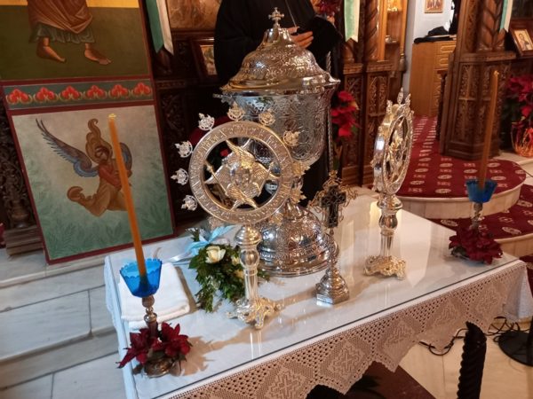 Τον Μέγα Εσπερινό των Θεοφανείων, μετά της Θ. Λειτουργίας του Μεγάλου Βασιλείου καθώς και τον Μέγα Αγιασμό, στον Ενοριακό Ι. Ναό Μεταμορφώσεως του Σωτήρος Κορίνθου τέλεσε χθες ο Μητροπολίτης Κορίνθου κ. Διονύσιος πλαισιούμενος από τους Εφημερίους του Ι. Ναού Πανοσ. Αρχιμ. π. Ιωακείμ Βασιλάκο και π. Αρκάδιο Ραζνύ και τους Διακόνους του.