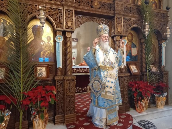 Μετά το πέρας της Θ. Λειτουργίας ο Μητροπολίτης τέλεσε τον Μέγα Αγιασμό και επεσήμανε ότι με την χάρη του Θεού ολοκληρώνεται το Άγιο Δωδεκαήμερο της Θείας Επιφανείας του Κυρίου μας Ιησού Χριστού και διατρανώθηκε για ακόμη μια φορά ότι ο Θεός είναι μαζί μας. Παρά το γεγονός ότι εμείς τον εγκαταλείψαμε, Εκείνος έρχεται για να μας δώσει τον απολεσθέντα Παράδεισο και αυτό είναι το μεγαλύτερο δώρο Του προς εμάς. Ο άνθρωπος έκανε πολλές προσπάθειες ανά τους αιώνες να υπερβεί τον Θεό αλλά ποτέ δεν τα κατάφερε. Αρκεί κάθε φορά μια κακουχία, όπως ο ιός, ώστε να το ενθυμούμεθα με τον πιο εφιαλτικό τρόπο! Το χειρότερο δε είναι ότι παρατηρούνται φαινόμενα παρακμιακά, φόβου, εκμετάλλευσης και αρρωστημένης καθοδήγησης, που οδηγούν ακόμα και στην αφαίρεση της ζωή των συνανθρώπων μας. Ταυτόχρονα ο εγκλεισμός μας έφερε στο σημείο αντί να αγαπάμε τους συνανθρώπους μας και να αλληλοστηριζόμαστε να τους μισούμε φτάνοντας ακόμα και σε ανθρωποκτονίες. Όμως «Επεφάνει ο Σωτήρ», έγινε Άνθρωπος, για να σώσει τον άνθρωπο και εμείς το μόνο που έχουμε να κάνουμε είναι να αφεθούμε στην διδασκαλία Του! Η λύση σε όλα τα δεινά είναι το Ευαγγέλιο και η αγάπη! Τελικά όμως αυτό το τόσο απλό κατέστη σήμερα το πλέον δύσκολο. Είθε ο Αγιασμός των υδάτων να απομακρύνει τον τρωτό άνθρωπο από την αμαρτία, ώστε να μπορέσει να εξαγιασθεί και ανάλογα με το πόσο βλέπει τον Θεό, στο πρόσωπο του συνανθρώπου του, να καταστεί υγιής και να κατακτήσει την αιωνιότητα!
