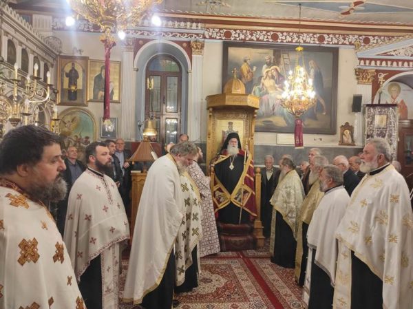 Την παραμονή της εορτής ο σεπτός Ποιμενάρχης κ. Παύλος μετέβη στον πανηγυρίζοντα Ιερό Ναό Αγίου Σπυρίδωνος στη Λυγιά (Αρχιερατικής Περιφέρειας Ευρωστίνης), όπου πλαισιούμενος υπό πλειάδος Ιερέων χοροστάτησε στο Μέγα Εσπερινό. Ο Αρχιερατικός Επίτροπος Ευρωστίνης Αιδεσ. Πρωτ/ρος π. Ιωάννης Γιαννακάς καλωσόρισε τον Σεβασμιώτατο στην Αρχιερατική Περιφέρεια του δυτικού άκρου της Ι. Μητροπόλεως, ευχόμενος καλλίκαρπη ποιμαντορία.