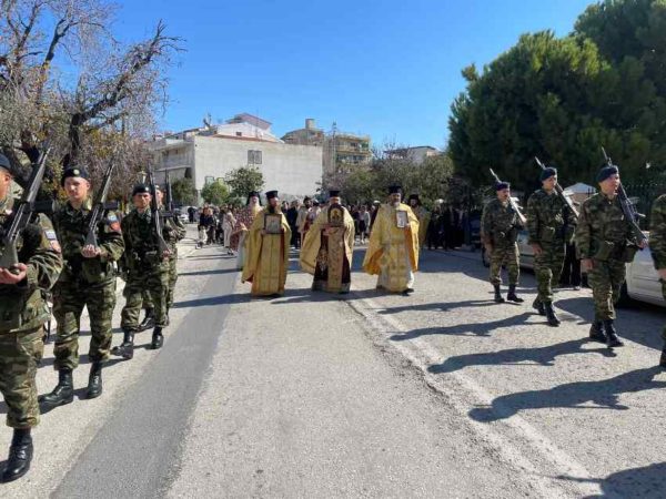 Στην συνέχεια πραγματοποιήθηκε γύρω από τον Ι. Ναό και εκτός του αυλείου χώρου, υπό τον παιανισμό της Φιλαρμονικής του Δήμου Κορινθίων και με τη συμμετοχή Στρατιωτικού Αγήματος της Σχολής Μηχανικού Λουτρακίου, η Ιερά Λιτάνευση των αγίων Εικόνων, προεξάρχοντος του Σεβασμιωτάτου Ποιμενάρχου κ. Διονυσίου, ο οποίος και ετέλεσε στην συνέχεια μετά του αγίου Κεγχρεών κ. Αγαπίου το κατ’ έτος Μνημόσυνο υπέρ αναπαύσεως πάντων των κεκοιμημένων Αρχιερέων της Ιεράς Μητροπόλεώς μας, καθώς και των Ευεργετών αυτής.