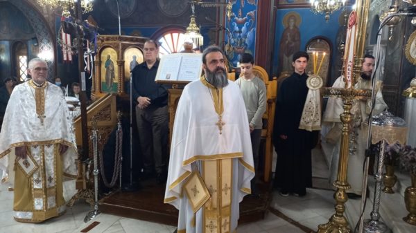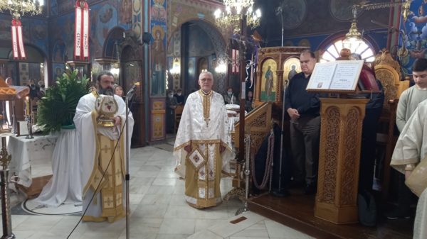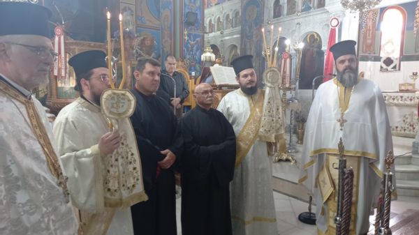 Τον Σεβασμιώτατο πλαισίωσαν ο Πρωτοπρεσβύτερος π. Αθανάσιος Κοντογιάννης, ο Εφημέριος του Ι. Ναού και Αρχιερατικός Επίτροπος Βέλου – Βόχας Πρωτοπρεσβύτερος π. Κυριάκος Σκλίας και οι Διάκονοί του.
