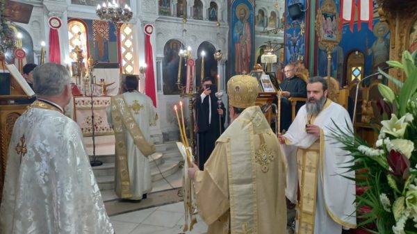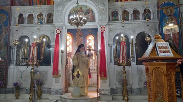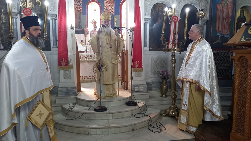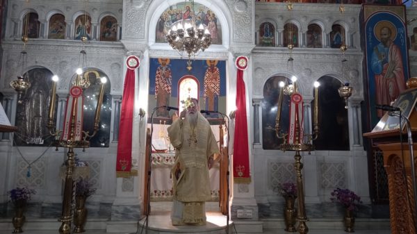 Πριν την τέλεση του ετήσιου Μνημοσύνου της μακαριστής Ειρήνης Πηγαδίτη ομίλησε ο Σεβασμιώτατος για την Ανάσταση του Κυρίου μας Ιησού Χριστού τονίζοντας τα λόγια του Αποστόλου Παύλου «εἰ δὲ Χριστὸς οὐκ ἐγήγερται, κενὸν ἄρα τὸ κήρυγμα ἡμῶν, κενὴ δὲ καὶ ἡ πίστις ὑμῶν» (Α’ Κορ. ιε’, 14), δηλαδή, αν ο Χριστός δεν είχε αναστηθεί κανένας μας δεν θα είχε την δυνατότητα της αναστάσεως. Επομένως, μπορούμε να ισχυριστούμε ότι οι υλιστές, οι οποίοι λένε ότι δημιουργηθήκαμε από μία χημική σύμπτωση, έχουν εν μέρει δίκιο. Όμως, οι ανθρωπολόγοι λέγουν ότι ο άνθρωπος δεν αποτελείται μόνο από σώμα αλλά και από ψυχή, η οποία είναι αθάνατη και αιώνια. Είναι επομένως αδύνατον, αυτό το «θαύμα» που καλείται άνθρωπος, να είναι ένα σύνολο από απλές χημικές ενώσεις που αυτό-δημιουργήθηκαν και με διάθεση αυτό-καταστροφικότητας θα εξαφανίσουν την ζωή από τον πλανήτη μας. Συνεπώς, η Ανάσταση του Χριστού είναι το μεγαλύτερο δώρο του Θεού στον άνθρωπο, καθώς προσφέρει την αιώνιο ζωή και την ελπίδα”.