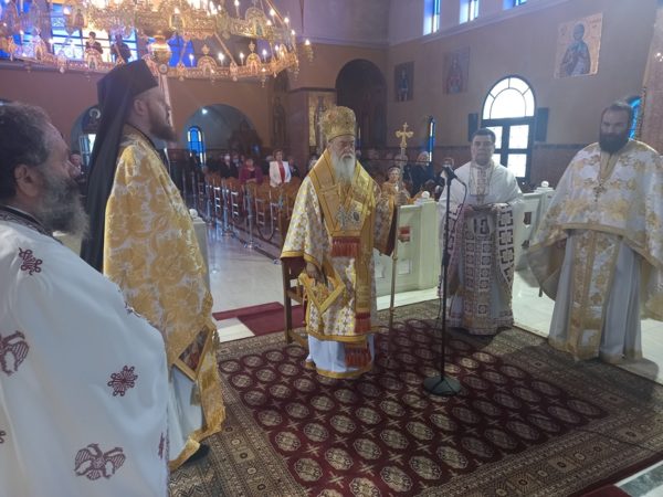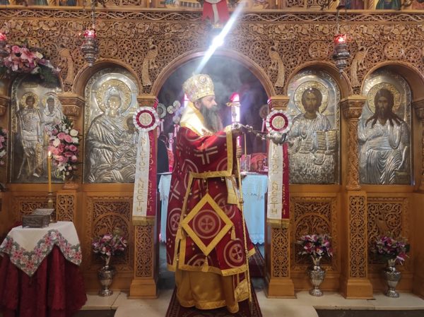 Στο κήρυγμα του ο Σεβασμιώτατος, αναφέρθηκε στα γεγονότα, που αναφέρουν οι Ι. Ευαγγελιστές, σχετικά με την Ανάσταση του Κυρίου μας επισημαίνοντας ότι, όταν ο Κύριος εμφανίστηκε τους Μαθητές Του, τους είπε «Χαίρετε». Από τότε αυτός ο χαιρετισμός, αφού αρχικά αποτέλεσε συνθηματικό χαιρετισμό σε περιόδους διωγμών αναμεταξύ των Χριστιανών, αργότερα κατέληξε σε χαιρετισμό όλων των ανθρώπων στην Γη. Γιατί όμως χαιρόμαστε; Χαιρόμαστε γιατί ο Χριστός Αναστήθηκε και όσοι πιστεύουμε στον Χριστό και στην Ανάστασή Του δεν αντιμετωπίζουμε δυσκολίες ούτε ανυπέρβλητα εμπόδια.
