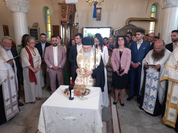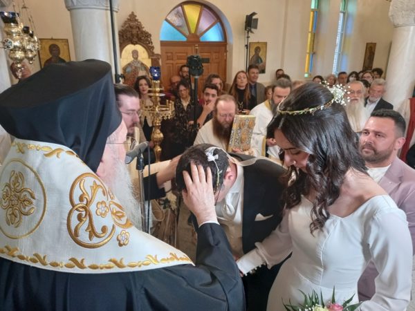 Ο Σεβασμιώτατος ομίλησε, με πατρικό τρόπο, νουθετώντας πνευματικά τους νεόνυμφους δίδοντας τους την ευχή να ακολουθούν στην ζωή τους το Ι. Ευαγγέλιο!