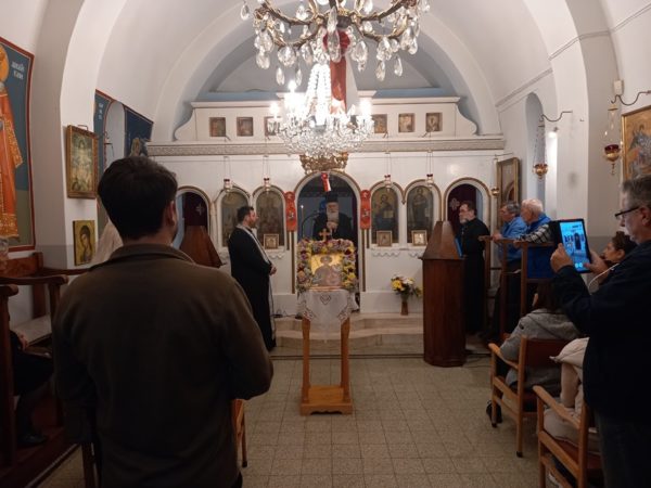 Μετά το πέρας του γάμου ο Σεβασμιώτατος μετά του Αρχιδιακόνου π. Δαμασκηνού Γεννηματά, επισκεφτήκαν το πανηγυρίζον Ι. Παρεκκλήσιο του Αγίου Γεωργίου στο Λουτράκι, όπου και συμμετείχαν στον Παρακλητικό Κανόνα στον Άγιο Γεώργιο, ενώ μετά το πέρας ο Σεβασμιώτατος ομίλησε για το μήνυμα της Αναστάσεως προς τους παρευρισκόμενους πιστούς, οι οποίοι με πολύ χαρά έλαβαν την ευλογία και τις ευχές του πνευματικού τους Πατέρα!