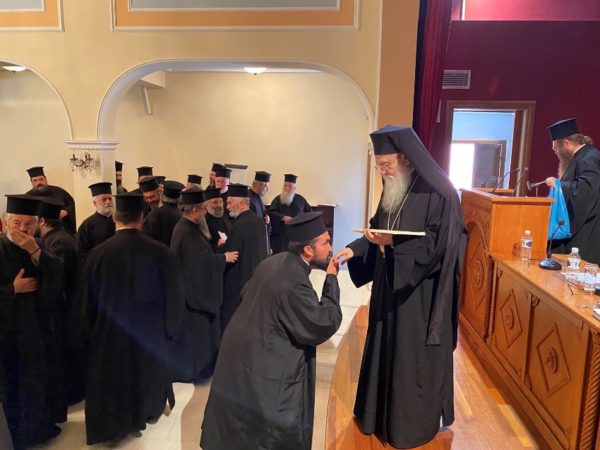 Επεσήμανε δε ότι, η Καινή Διαθήκη είναι «Παυλοκρατούμενη», αφού οι Ευαγγελιστές Λουκάς και Μάρκος υπήρξαν μαθητές Του, ενώ ο ίδιος έχει γράψει δεκατέσσερες Επιστολές, στις οποίες ο π. Παναγιώτης αναφέρθηκε περιληπτικά τονίζοντας τις σημαντικότερες θεολογικές διδασκαλίες Του. Ολοκληρώνοντας, δεν παρέλειψε να ευχαριστήσει τον σεπτό Ποιμενάρχη μας και τον άγιο Πρωτοσύγκελλο για την ευλογία να είναι ο εισηγητής του Ιερατικού Συνεδρίου.