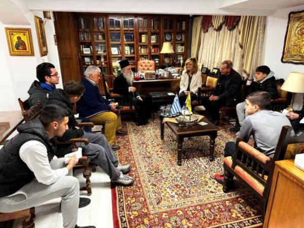 Η συνάντηση ολοκληρώθηκε με αναμνηστικές φωτογραφίες και προσφορά κερασμάτων, ενθυμίων και ημερολογίων από τον Σεβασμιώτατο στους μαθητές.