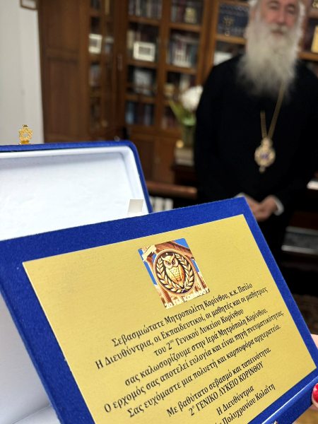 Μαθητές του 2ου Λυκείου Κορίνθου επισκέφθηκαν τον Μητροπολίτη Παύλο στα Γραφεία της Μητρόπολης