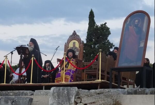 Μέγας Πολυαρχιερατικός Εσπερινός στο «Βήμα του Γαλλίωνος»,στην Αρχαία Κόρινθο