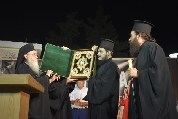 Ο ιεράρχης, ευχαριστώντας τον Μητροπολίτη Μεγάρων για την τιμητική πρόσκλησή του και την δυνατότητα να μετάσχει στις Εκδηλώσεις αυτές μαζί με τον Πρωτοσύγκελλο του και επίσης Προσφυγικής καταγωγής Μεγαρέα Θεοφιλέστατο Επίσκοπο Κεγχρεών κ. Αγάπιο, του προσέφερε ως αντίδωρο ένα Αρχιερατικό Εγκόλπιο.