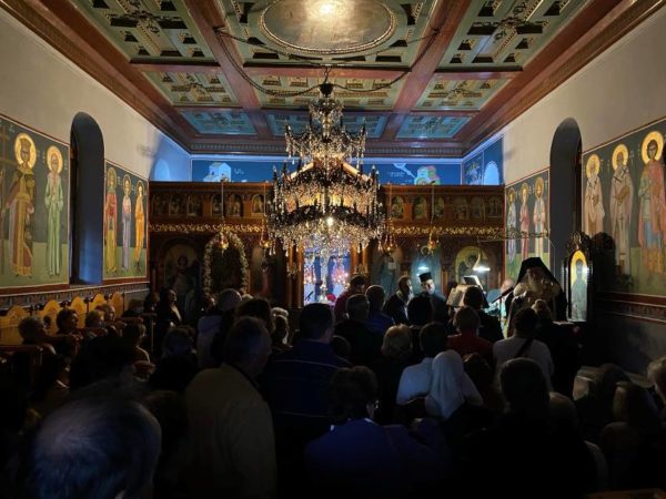Η ιστορική Ιερά Μονή Κοιμήσεως της Θεοτόκου γέμισε από Πιστούς που έσπευσαν με πούλμαν από τους Αγίους Θεοδώρους, το Λουτράκι και την Κόρινθο προκειμένου να συμμετάσχουν στην Θεία Λειτουργία που τέλεσε ο Ποιμενάρχης.