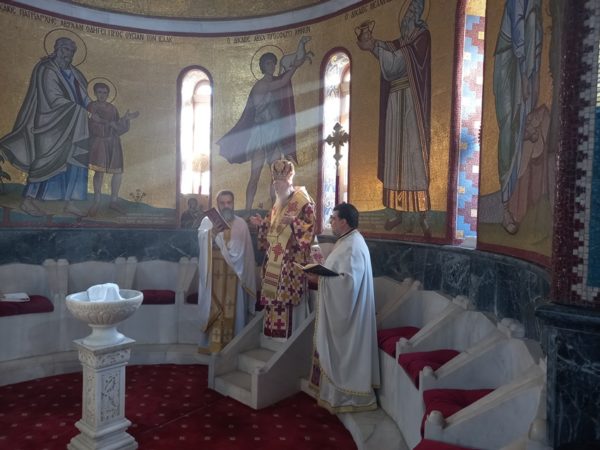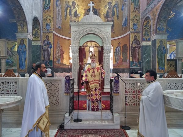 Στο κήρυγμά του ο σεπτός Ποιμενάρχης κ. Διονύσιος ανέλυσε την Ευαγγελική περικοπή της ημέρας επεξηγώντας στους πιστούς ότι πριν το περιστατικό που μας αναφέρει, με την θεραπεία του σεληνιαζόμενου νέου, είχε πραγματοποιηθεί ένα άλλο θαύμα, αυτό της Μεταμορφώσεως του Σωτήρος. Ο Κύριος αφού πήρε μαζί Του τους πιο ώριμους μαθητές Του «ἀναφέρει αὐτοὺς εἰς ὄρος ὑψηλὸν» (Μαρ. θ’, 2) όπου και μεταμορφώθηκε, τα ρούχα Του έγιναν λευκά σαν το χιόνι, το πρόσωπό Του έλαμψε σαν τον ήλιο και αμέσως εμφανίστηκαν ο Προφήτης Ηλίας και ο Προφήτης Μωυσής συνομιλούντες μαζί Του για το Πάθος Του.