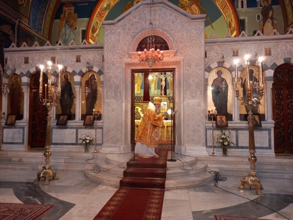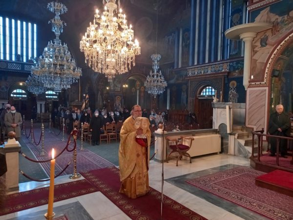 Στον Καθεδρικό Ι. Ναό του Αποστόλου Παύλου στην Κόρινθο λειτούργησε χθες Κυριακή της Αποκρέω, 27 Φεβρουαρίου 2022, ο Σεβασμιώτατος Μητροπολίτης Κορίνθου κ. Διονύσιος, πλαισιούμενος από τους Ιερείς του Ι. Ναού και τους Διακόνους του.