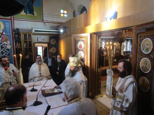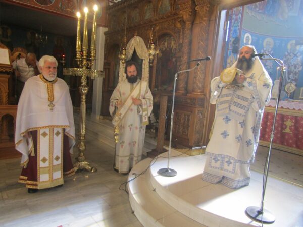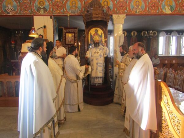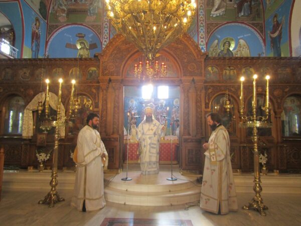 Αρχιερατική Θεία Λειτουργία τελέστηκε σήμερα Σάββατο 18 Ιουλίου 2020 στον Ιερό Ναό Κοιμήσεως Θεοτόκου Ιωνίας στην Κόρινθο υπό του Θεοφιλεστάτου Επισκόπου Κεγχρεών κ. Αγαπίου, Πρωτοσυγκέλλου της Ιεράς Μητροπόλεως Κορίνθου, συμπροσευχομένου του Σεβασμιωτάτου Μητροπολίτου κ. Διονυσίου.