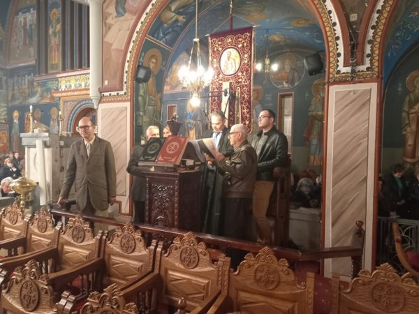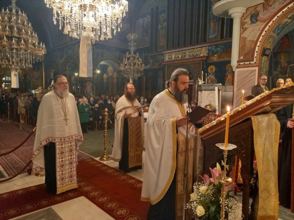 Τον Θείο λόγο κήρυξε, με την ευλογία του Σεβασμιωτάτου, ο Νομικός Σύμβουλος της Ιεράς Μητροπόλεως και μέλος του Μητροπολιτικού Συμβουλίου κ. Πέτρος Θωμαΐδης, αναλύοντας την Ιερά Ακολουθία των Χαιρετισμών, στην οποία υπάρχει έντονο το συναίσθημα του θαυμασμού, του δέους και της έκπληξης που προέρχονται από την ανθρώπινη αδυναμία να προσεγγίσει όλες τις αλήθειες που περιγράφονται στους Χαιρετισμούς. Ο άνθρωπος πλάστηκε από τον Θεό για να θαυμάζει τα μεγαλεία Του, να Τον δοξολογεί, να μετέχει στην ζωή Του και να γίνει κοινωνός της Θείας Φύσεως και όχι γιατί Εκείνος έχει την ανάγκη της ανθρώπινης ευγνωμοσύνης. Σ’ αυτές τις Ακολουθίες δεν ευχαριστούμε την Παναγία μόνο γιατί κάποτε έσωσε την Κωνσταντινούπολη αλλά γιατί με την ζωή και το παράδειγμά Της μας έδωσε ένα σκοπό ζωής, ένα νόημα και μία ουσία, γιατί μας γλίτωσε από την άνοια και την έλλειψη ενδιαφέροντος και μας έδωσε την αθανασία. Με τους Χαιρετισμούς ευχαριστούμε την Θεοτόκο μ’ όλες μας τις αισθήσεις και μ’ όλα μας τα συναισθήματα.
