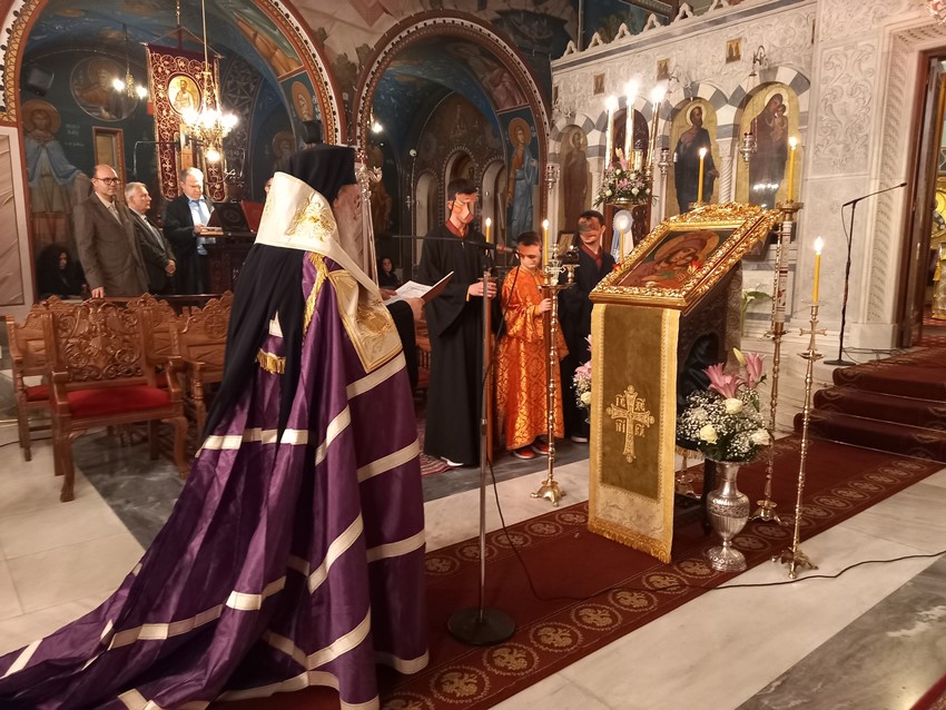O Σεβασμιώτατος Μητροπολίτης Κορίνθου κ. Διονύσιος τέλεσε την Ιερά Ακολουθία του Ακαθίστου Ύμνου στον Ιερό Καθεδρικό Ναό Αποστόλου Παύλου Κορίνθου το απόγευμα της Παρασκευής, 31 Μαρτίου 2023.