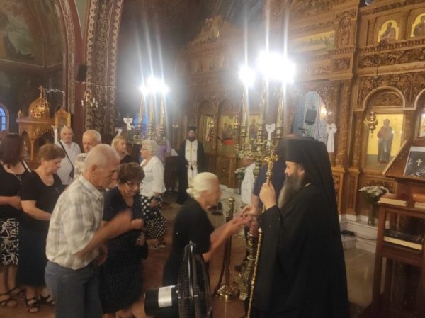 Ο Θεοφιλέστατος Επίσκοπος Κεγχρεών κ. Αγάπιος συνοδευόμενος από τον Διάκονο π. Χρήστο Χίλια παρέστη στον Εσπερινό και εν συνεχεία στην Ιερά Παράκληση στον Ενοριακό Ιερό Ναό Κοιμήσεως Θεοτόκου Ξυλοκερίζης, που ετέλεσε ο εκεί Εφημέριος π. Ιωάννης Ρούκης, την Τετάρτη 9 Αυγούστου 2023.