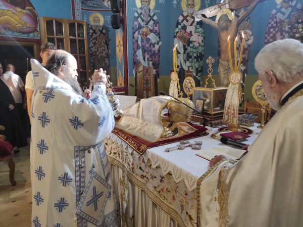 Το πρωί της αυτής ημέρας ο Θεοφιλέστατος Επίσκοπος Κεγχρεών κ. Αγάπιος χοροστάτησε στον πανηγυρικό Όρθρο και τέλεσε την Θεία Λειτουργία στον ως άνω Ιερό Ναό συλλειτουργούντων του εκεί Εφημερίου π. Ιωάννη Δελημπαλτά και του Διακόνου π. Χρήστου Χίλια.