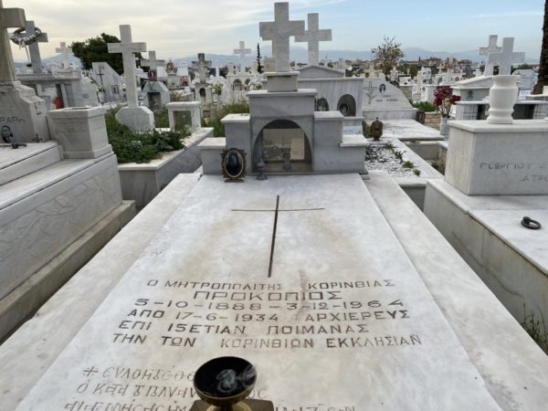 Με την ευκαιρία της εορτής των Αγίων την Δευτέρα, 4 Δεκεμβρίου 2023, ο Σεβασμιώτατος Μητροπολίτης Κορίνθου κ. Διονύσιος, μετά των Διακόνων του π. Δαμασκηνού Γεννηματά και π. Χρήστου Χίλια και με την κυριαρχική άδεια του Μακαριωτάτου Αρχιεπισκόπου Αθηνών και πάσης Ελλάδος κ. κ. Ιερωνύμου β’ μετέβη στο Α’ Κοιμητήριο Αθηνών και τέλεσε “ευγνωμόνως Τρισάγιον”, επί των τάφων των αοιδίμων Αρχιεπισκόπων, κυρού Δαμασκηνού, του Παπανδρέου, Αντιβασιλέως και Πρωθυπουργού γενομένου ως και των μακαριστών Αρχιεπισκόπων Σεραφείμ του Τίκα και Χριστοδούλου του Παρασκευαΐδου, πνευματικού του πατρός.