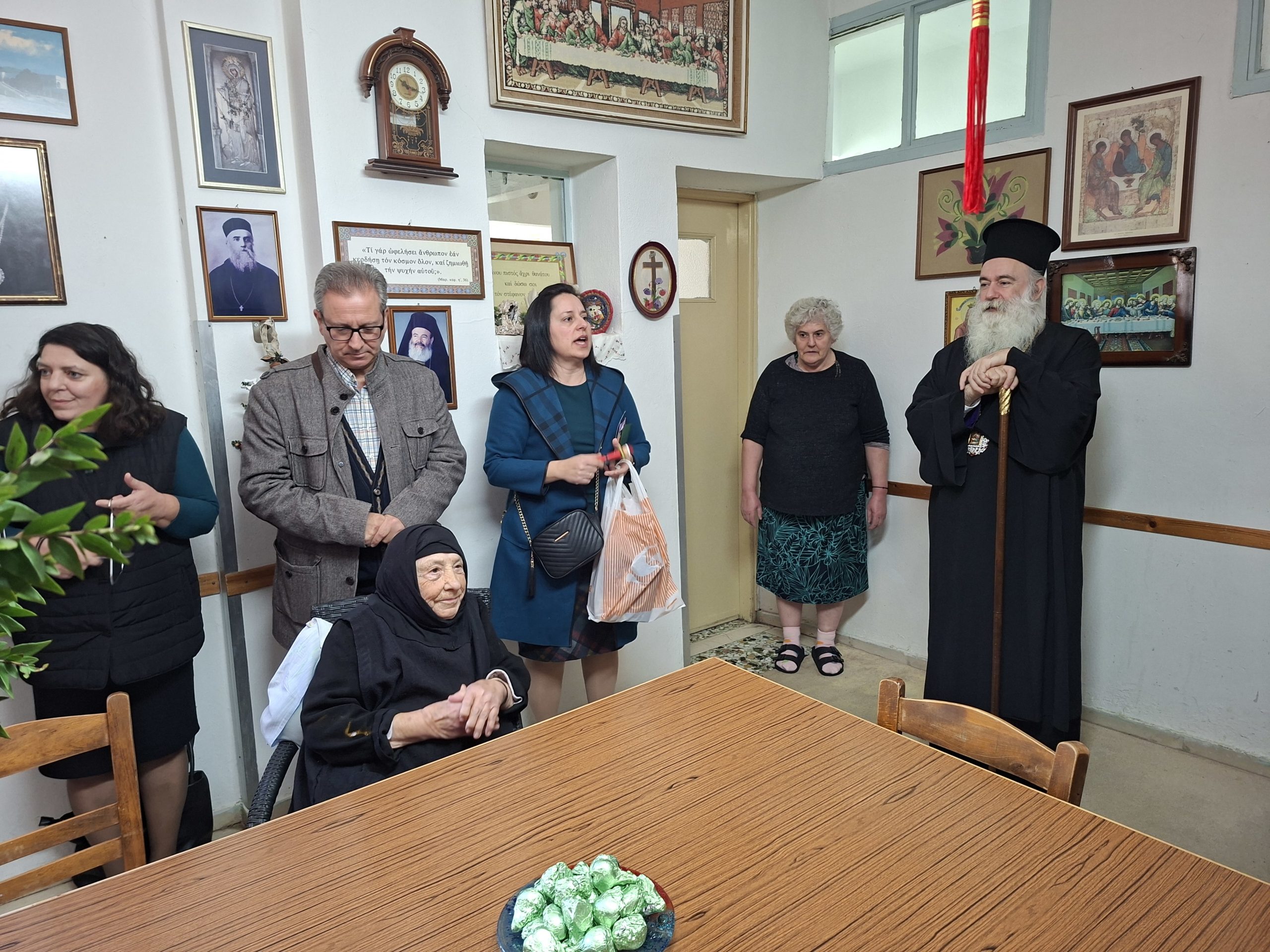 Την Τρίτη 30 Δεκεμβρίου 2025, ο Σεβασμιώτατος Μητροπολίτης κ. Παύλος μετέβη στο Γηροκομείο «Οίκος Αγίας Ελένης», συνοδευόμενος από συνεργάτες του προκειμένου να δει από κοντά και να ευχηθεί για τις εορτές του Αγίου Δωδεκαημέρου στις γερόντισσες που εγκαταβιώνουν εκεί, αλλά και στις Αδελφές της Ι. Μονής Οσίου Παταπίου που διακονούν στο ίδρυμα.