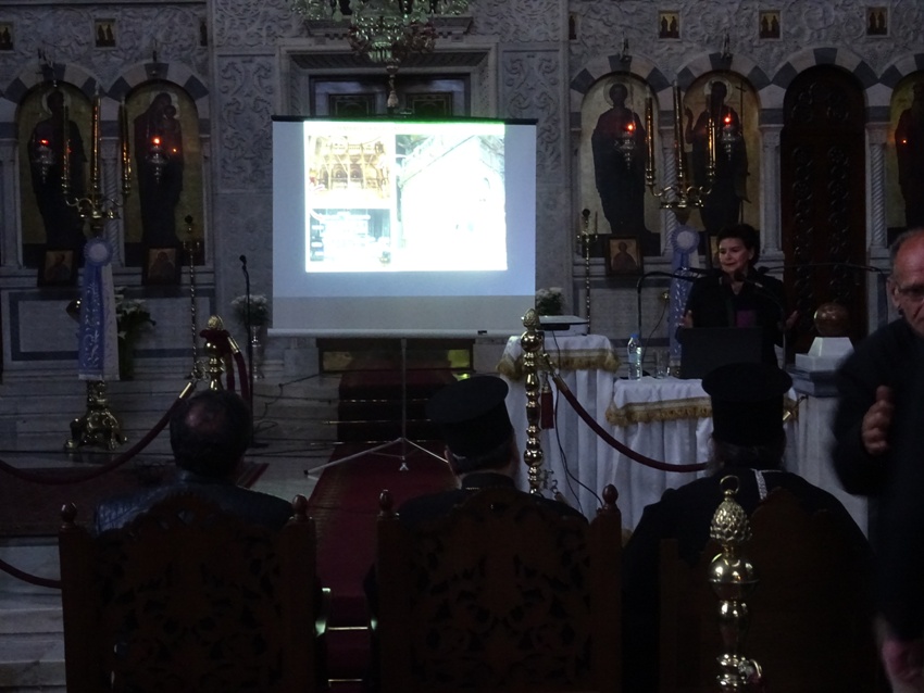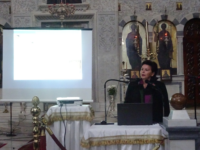 Η Εκδήλωση περιελάμβανε στο πρώτο μέρος της, ομιλία από την κ. Αντωνία Μοροπούλου, Καθηγήτρια του Εθνικού Μετσοβίου Πολυτεχνείου, επικεφαλής της Διεπιστημονικής Ομάδος του έργου και Πρόεδρο της Αντιπροσωπείας του Τεχνικού Επιμελητηρίου Ελλάδος (Τ.Ε.Ε.), με θέμα: «Η Αποκατάσταση του Ιερού Κουβουκλίου του Παναγίου Τάφου στα Ιεροσόλυμα».