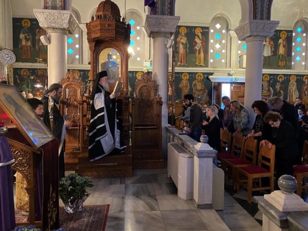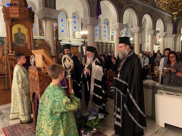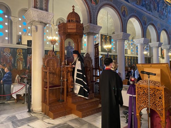 Ο Σεβασμιώτατος πλαισιώθηκε από τους Αιδεσ. Πρωτ/ρους π. Αθανάσιο Κοντογιάννη, και π. Δημήτριο Παπαγεωργίου και τον Αρχιδιάκονο π. Δαμασκηνό Γεννηματά.