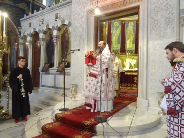 Αντί κηρύγματος ανεγνώσθη το μήνυμα της Ιεράς Συνόδου της Εκκλησίας της Ελλάδος για την εορτή των Τριών μεγίστων φωστήρων, το οποίο ανέγνωσε ιεροπρεπώς ο Αρχιερατικός Επίτροπος Κορίνθου – Λουτρακίου Αιδεσ. Πρωτ/ρος π. Παναγιώτης Μαυραγάνης.