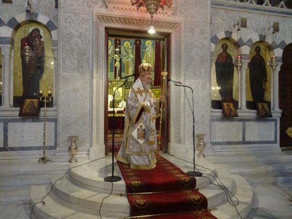 Ο Σεβ. Ποιμενάρχης, λίγο πριν την απόλυση στην σύντομη αναφορά του ομίλησε για τους τιμώμενους Αγίους και κυρίως για την προσφορά τους προς την Εκκλησία, τις Επιστήμες, την Παιδεία και τον μαθητή συνάνθρωπο, τονίζοντας ότι οι Άγιοι Ιεράρχες είναι μοναδικοί και ανεπανάληπτοι, γιατί ενώ πανεπιστήμονες όντας αυτοί διακατέχονται από ακράδαντη πίστη στον Τριαδικό Θεό, η οποία πίστη Τους διαφαίνεται στα έργα Τους και στους Ιερούς αγώνες Τους γι᾿ αυτήν σε περίοδο που οι αιρέσεις λυσσομανούσαν εναντίον της αληθούς πίστεως, την ίδια ακριβώς στιγμή προσφέρουν την επιστήμη για να κατανοήσουν, κυρίως οι νέοι και οι νέες, που είναι το μέλλον της Πατρίδας μας, τα της Πίστεως βαθύτερα νοήματα. Αυτή η αμφίδρομη θεώρηση αποτελεί την μοναδικότητα και την σπουδαιότητα των μεγάλων και σημαντικών Αυτών Διδασκάλων και Αγίων Ιεραρχών της Ορθοδόξου Εκκλησίας μας.