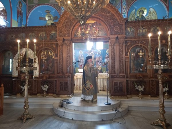 Στο κήρυγμά του ο Σεβασμιώτατος ανέλυσε την Ευαγγελική περικοπή δίδοντας έμφαση στο γεγονός ότι ένας νέος άνθρωπος ανησυχεί για το πως θα κερδίσει τον Παράδεισο, παρότι έχει όλη την ζωή μπροστά του ενώ συνήθως οι ανησυχίες αυτές είναι για μεγαλύτερους. Ο Χριστός ψυχολογώντας κατάλληλα τον νέο τον θέτει προ του διλήμματος να πουλήσει τα υπάρχοντά του και να τα δώσει στους φτωχούς ακολουθώντας Τον ή να κρατήσει τον ομολογουμένως μεγάλο πλούτο του. Όταν ο νέος αδυνατεί να αποχωριστεί τα υλικά κεκτημένα του οι Μαθητές του Χριστού, που άκουσαν τον διάλογο, αναρωτήθηκαν εύλογα, «τίς ἄρα δύναται σωθῆναι» (Ματθ. ιθ΄,25), αφού είτε μικρός είναι κάποιος είτε μεγάλος θα κάνει λάθη και σφάλματα. Ο Κύριος τους απάντησε «παρά ἀνθρώποις τοῦτο ἀδύνατόν ἐστι, παρά δέ Θεῷ πάντα δυνατά ἐστι» (Ματθ. ιθ΄,26). Για τους ανθρώπους είναι αδύνατο αλλά για τον Θεό όλα είναι δυνατά και όλες οι αμαρτίες συγχωρούνται με ειλικρινή μετάνοια. Αυτά που δεν μπορούν οι άνθρωποι να κάνουν τα μπορεί ο Θεός και όσοι πιστεύουν στον Θεό δείχνοντας Του εμπιστοσύνη θα σωθούν και θα λάβουν τον Παράδεισο.