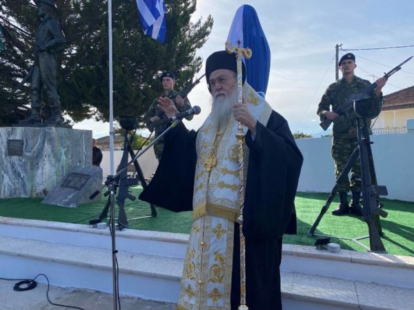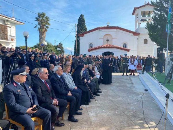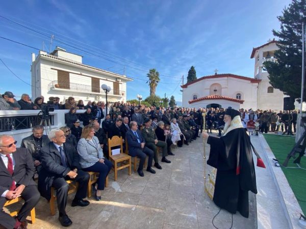 Ο Μητροπολίτης Κορίνθου στα αποκαλυπτήρια προτομής του στρατηγού Κωνσταντίνου Κόρκα στην Πουλίτσα