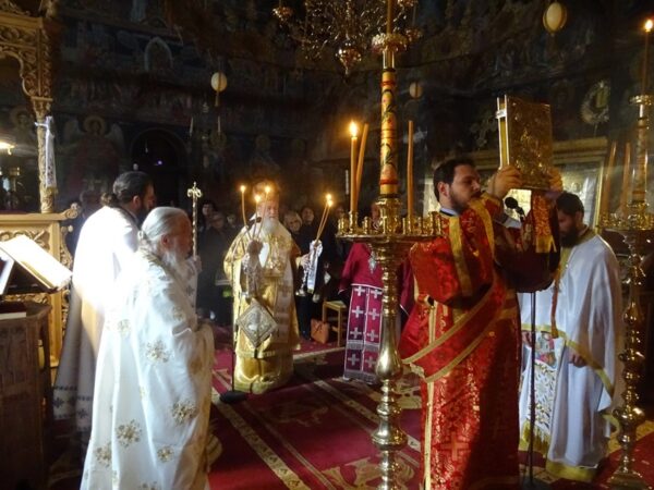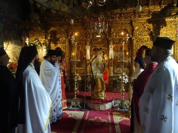 Το απόγευμα του Σαββάτου, 2 Νοεμβρίου 2019, παραμονή της εορτής, τελέσθηκε από τους πατέρες της Ι. Μονής ο πανηγυρικός Εσπερινός και την επομένη μετέβη στην πανηγυρίζουσα η Ι. Μονή και τέλεσε την Αρχιερατική Θ. Λειτουργία ο Σεβ. Μητροπολίτης μας κ. Διονύσιος, πλαισιούμενος από τους συνοδούς του Κληρικούς και τους πατέρες της Ι. Μονής.
