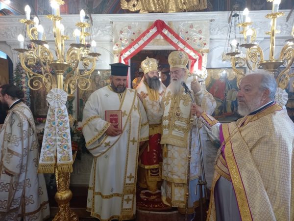 Σήμερα, τόνισε, λαμπρύνουμε την εορτή και πανήγυρη του χωριού σας με την εις Διάκονον Χειροτονία του κ. Αθανασίου Καραντζιά, στον οποίο ο Ποιμενάρχης μας έδωσε πνευματικές οδηγίες για τον περαιτέρω τρόπο ζωής του, ως Κληρικού πλέον.