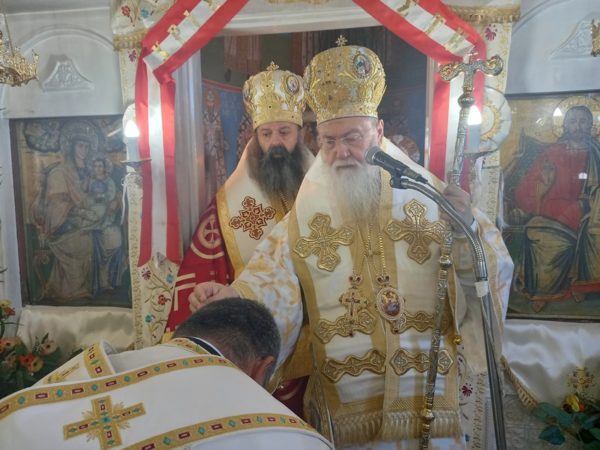 Σήμερα, τόνισε, λαμπρύνουμε την εορτή και πανήγυρη του χωριού σας με την εις Διάκονον Χειροτονία του κ. Αθανασίου Καραντζιά, στον οποίο ο Ποιμενάρχης μας έδωσε πνευματικές οδηγίες για τον περαιτέρω τρόπο ζωής του, ως Κληρικού πλέον.