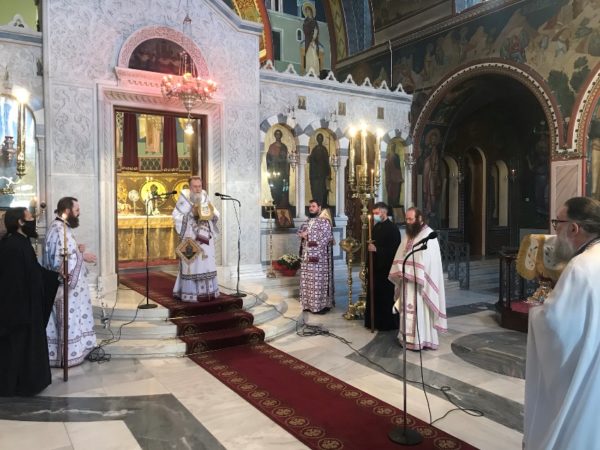 Στον Ιερό Ναό του Αποστόλου Παύλου στην Κόρινθο λειτούργησε χθες Κυριακή, 1η Νοεμβρίου 2020, ο Σεβασμιώτατος Μητροπολίτης κ. Διονύσιος, πλαισιούμενος από τους Ιερείς του Ιερού Ναού και τους Διακόνους του.