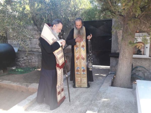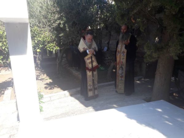 Εν συνεχεία, ο Σεβασμιώτατος μετέβη στην Ιερά Μονή Αναστάσεως Χριστού Λουτρακίου όπου παρουσία και του Θεοφιλεστάτου Πρωτοσυγκέλλου κ. Αγαπίου τέλεσε Νεκρώσιμο Τρισάγιο επί του τάφου του αειμνήστου Επισκόπου Κανώπου (Πατριαρχείου Αλεξανδρείας) κυρού Σπυρίδωνος (κατά κόσμον Ιωάννου Μηλιώτη), μεγάλου Ευεργέτου της Αποστολικής Ιεράς Μητροπόλεώς μας με την ευκαιρία της συμπληρώσεως επτά ετών από την εκδημία του.