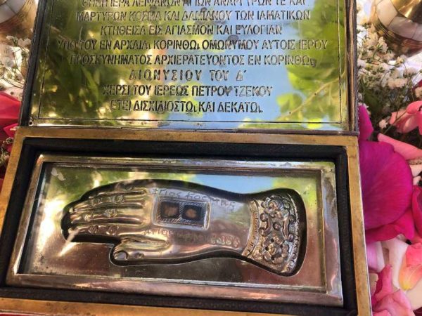 Την ίδια ημέρα και στο πανηγυρίζον Ιερό Προσκύνημα των Αγίων Αναργύρων στην Αρχαία Κόρινθο, λειτούργησε ο Κορίνθιος Σεβασμιώτατος Μητροπολίτης Μαδαγασκάρης κ. Ιγνάτιος, ο οποίος ομίλησε στους ευλαβείς προσκυνητές επίκαιρα και ευχαρίστησε εγκαρδίως τον Σεβασμιώτατο Μητροπολίτη κ. Διονύσιο, ο οποίος με πολλή αγάπη του παρεχώρησε το Ι. Θυσιαστήριο για να τελέσει την Θ. Λειτουργία και να δεχθεί τα σέβη και τις συνδρομές των ευσεβών προσκεκλημένων του για την Ιεραποστολική του δράση.