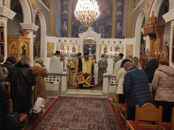 Στον Ενοριακό Ιερό Ναό Αγίου Νικολάου Κορίνθου χοροστάτησε στην Ιερά Ακολουθία των Α΄ Χαιρετισμών ο Θεοφιλέστατος Πρωτοσύγκελλος της Ιεράς Μητρόπολης Κορίνθου Επίσκοπος Κεγχρεών κ. Αγάπιος την Παρασκευή, 3 Μαρτίου 2023, πλαισιούμενος από τους Εφημερίους του Ιερού Ναού Αισεσ. Πρωτ/ρους π. Νικόλαο Μπιθαρά, π. Δημήτριο Παπαγεωργίου και τον Διάκονο π. Χρήστο Χίλια.
