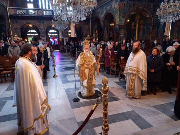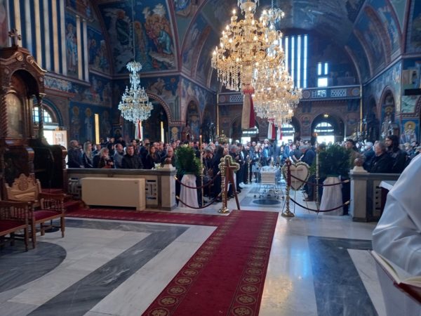 Αμέσως μετά την Θεία Λειτουργία ο Ποιμενάρχης τέλεσε, στον ως άνω Ιερό Ναό, την Εξόδιο Ακολουθία της Αικατερίνης Γεωργιάδη, ομιλώντας παρηγορητικά και επιστηρικτικά προς την οικογένεια, τους συγγενείς και φίλους της μακαριστής.