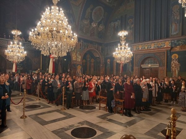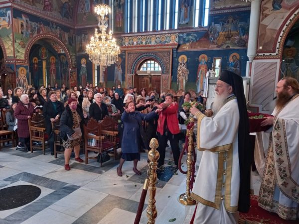 Στην Θεία Λειτουργία συμμετείχαν πλήθος πιστών, κυρίως νέων ανθρώπων, οι οποίοι κατέκλυσαν από τα ξημερώματα τον Ιερό Ναό προκειμένου να παρακολουθήσουν την ιδιαίτερη αυτή Ι. Ακολουθία, την οποία ο Σεβασμιώτατος καθιερώσει να τελεί κάθε Μεγάλο Σάββατο από της ενθρονίσεώς του, αλλά και για να Μεταλάβουν των Αχράντων Μυστηρίων.