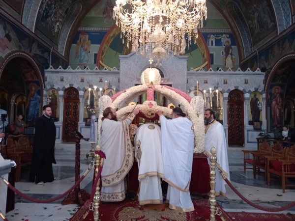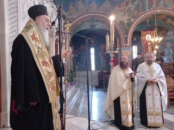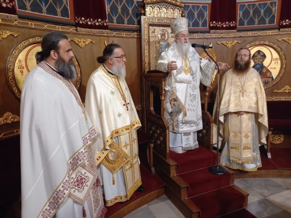 Στην απόλυση ο Σεβασμιώτατος ευχαρίστησε θερμά για την φιλακόλουθο στάση τους, διάβασε τον Κατηχητικό λόγο του Αγ. Ιωάννου του Χρυσοστόμου και αναφέρθηκε στην ιδιαίτερη ευλογία να συνεορτάζουν εφέτος με το Άγιο Πάσχα ο Άγιος Λεωνίδης και οι επτά συν αυτώ Άγιες Γυναίκες, Χαριέσση, Γαληνή, Νίκη, Καλίδο, Νουνεχία, Βασιλίσσα και Θεοδώρα, των μαρτηρησάντων το Μ. Σάββατο του έτους 250 ή 258 μ. Χ. στο Λέχαιο Κορινθίας, ενώ ολοκληρώνοντας ευχήθηκε από καρδιάς ο Αναστάς Κύριος να φωτίζει την ζωή όλων.