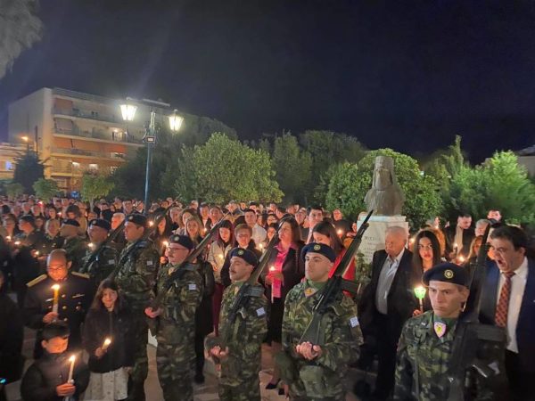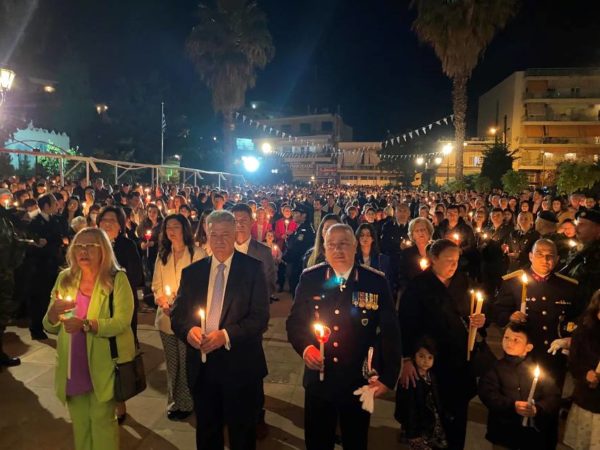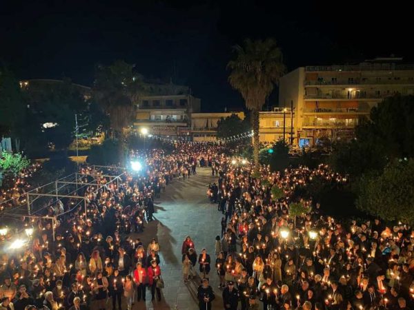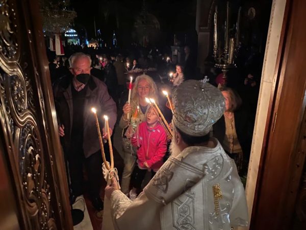 Από νωρίς είχαν κατακλύσει τον Ιερό Ναό, τον προαύλιο χώρο του και τους γύρω δρόμους και αφού έλαβαν από τα χέρια του Ποιμενάρχη κ. Διονυσίου το Άγιο Φως, κατευθύνθηκαν όλοι μαζί προς τα Προπύλαια του Ι. Ναού, όπου τελέστηκε η Ακολουθία της Αναστάσεως.