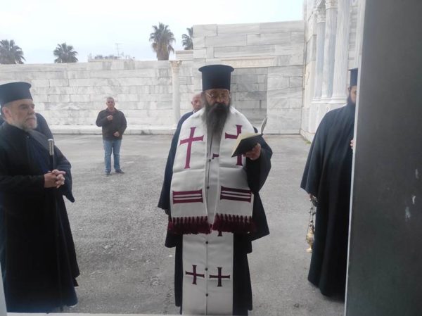 Πριν την έναρξη της Ι. Ακολουθίας ο Θεοφιλέστατος τέλεσε Νεκρώσιμο Τρισάγιο επί του τάφου του κτίτορος του Ι. Ναού αοιδίμου Συγκέλλου π. Νίκωνος Κοτσόβολη.