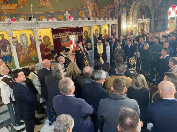 Σήμερα, και μετά από όλα όσα έχουμε περάσει, παρατηρώ και θαυμάζω πόσο όμορφα είναι, που είμαστε όλοι μαζί, κάτω από την σκέπη του Θεού, ενωμένοι ο Επίσκοπος, ο Δήμαρχος, το Δημοτικό Συμβούλιο, με την τιμητική παρουσία του Υφυπουργού μας κ. Ταγαρά, των Αντιπεριφερειαρχών, των εκπροσώπων των Ενόπλων Δυνάμεων, της Πυροσβεστικής, του Λιμενικού και άλλων Αρχών, και καθώς μπαίνουμε στον Νέο Χρόνο προσεύχομαι να μας χαριτώνει ο Θεός να δουλέψουμε τόσο, ώστε να ξεπεράσουμε τις δυσκολίες και να οδηγήσουμε τον κουρασμένο Λαό μας στην ευημερία!
