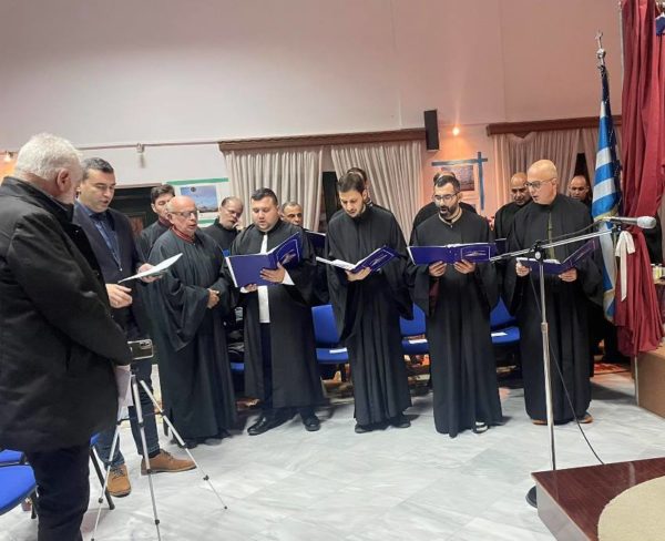 Την Χριστουγεννιάτικη εορτή «άνοιξε» η Χορωδία του Συλλόγου Ιεροψαλτών Κορινθίας «ΑΓΙΟΣ ΚΥΡΙΑΚΟΣ Ο ΥΜΝΟΓΡΑΦΟΣ», υπό την Δ/νση του χοράρχη κ. Βασιλείου Κουφογιάννη, με το Απολυτίκιον της εορτής της Γεννήσεως. Στην συνέχεια ο κ. Ανδρέας Παπαδόπουλος, μέλος της Αδελφότητος Θεολόγων «Ο ΣΩΤΗΡ» και μέλος του Κεντρικού Διοικητικού Συμβουλίου της Γ.Ε.Χ.Α., ευχαριστών τον Σεβασμιώτατο Ποιμενάρχη κ. Διονύσιο και ευχόμενος την ταχεία και άνοσο επιστροφή του στην Ι. Μητρόπολή μας, προσφώνησε τον Θεοφιλέστατο ομιλητή.