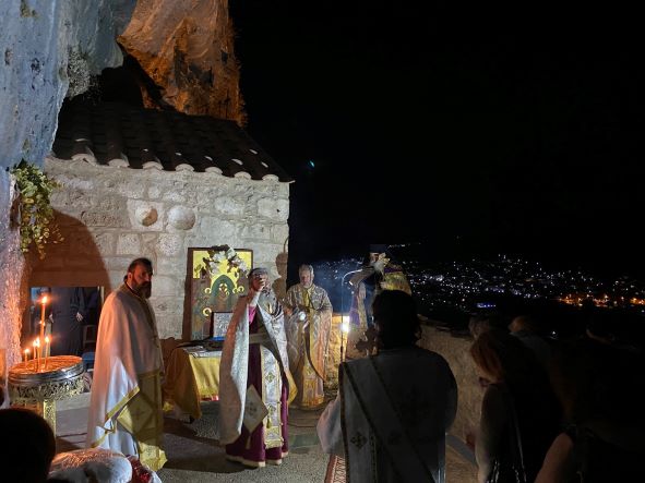 Αμέσως μετά το πέρας της Ιεράς Παρακλήσεως ο Σεβασμιώτατος μετέβη στην γειτονική Ιερά Μονή Κοιμήσεως της Θεοτόκου Βράχου Νεμέας, όπου και χοροστάτησε σε Ιερά Αγρυπνία. Η εν λόγω ιστορική Ιερά Μονή βρίσκεται αγκιστρωμένη στους βράχους και η Ιερά Ακολουθία τελέστηκε υπαιθρίως, μπροστά από το Καθολικό της Ιεράς Μονής.