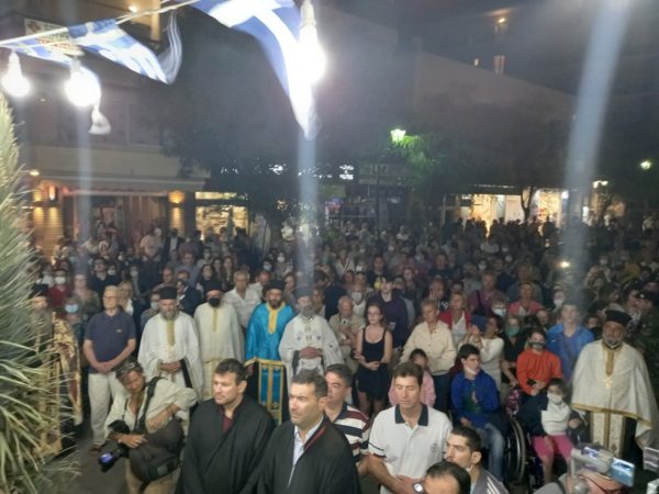Στην Λιτανευτική πομπή στους δρόμους της πόλεως του Λουτρακίου συμμετείχαν χιλιάδες