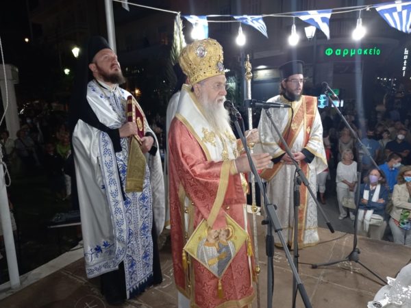 Στο κήρυγμά του, στην κεντρική πλατεία της πόλεως, ο Μητροπολίτης Κορίνθου επεσήμανε ότι ενώ ο μήνας Αύγουστος είναι αφιερωμένος στην Παναγία μας και ο Νέος Εκκλησιαστικός χρόνος, που αρχίζει την 1 η Σεπτεμβρίου, μας φέρνει πανηγυρικά μπροστά μας την Πάναγνη μορφή της Θεοτόκου και μας καλεί να εορτάσουμε το γενέθλιο Της.
