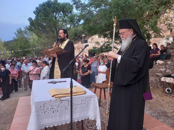Της Ιεράς Λιτανεύσεως προηγήθηκε η Ιερά Παράκληση στην Υπεραγία Θεοτόκο, την Κυριακή, 21 Αυγούστου 2022, στον χώρο του «παλαιομονάστηρου», χοροστατούντος του Σεβ. Μητροπολίτη Κορίνθου κ. Διονυσίου και συγχοροσταντούντος του Θεοφιλεστάτου Πρωτοσυγκέλλου της Ι. Μητροπόλεως Επισκόπου Κεγχρεών κ. Αγαπίου. Τον Θείο λόγο κήρυξε ο Πανοσ. Αρχιμ. π. Αχίλλειος Τσούτσουρας, Ιεροκήρυκας της Ι. Μητροπόλεως Τρίκκης, Γαρδικίου και Πύλης αναφερόμενος στο Θεομητορικό Πρόσωπο της Παναγίας μας μέσα απ’ τους λόγους του Αγίου Γρηγορίου του Παλαμά επισημαίνοντας ότι η Παναγία είναι η Μητέρα της Ζωής και παντός Άγιου κορυφή και τελείωση.