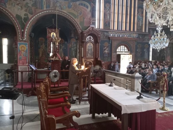 Ολοκλήρωσε δε την παρέμβαση του ο Σεβασμιώτατος, αναφέροντας μια άκρως εποικοδομητική ιστορία για την μελέτη της Αγίας Γραφής, που εκτυλίχθηκε σ᾿ ένα στρατόπεδο συγκέντρωσης, όπου κάτω από απαίσιες συνθήκες και με κίνδυνο της ζωής τους, Χριστιανοί ενίσχυαν την πίστη τους κάνοντας μελέτη της Αγίας Γραφής. Επομένως, εμείς σήμερα που είμαστε παντελώς ελεύθεροι επιβάλλεται να μελετάμε την Αγία Γραφή και να τρεφόμεθα με τον λόγο του Θεού, που το λιγότερο μας εξανθρωπίζει. Ας μην χάνουμε χρόνο και ας Την μελετούμε, ώστε να φωτιστεί παντοτεινά η καρδιά μας, γιατί έτσι θα γίνουμε ΑΝΘΡΩΠΟΙ!